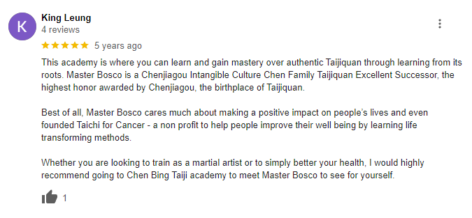 Our academy's founder, Master Chen Bing, is renowned as one of the most respected Tai Chi masters, given his distinguished bloodline and vast teaching skills.